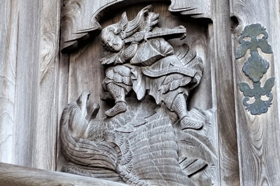 鷹を踏む浮彫を拡大したもの。