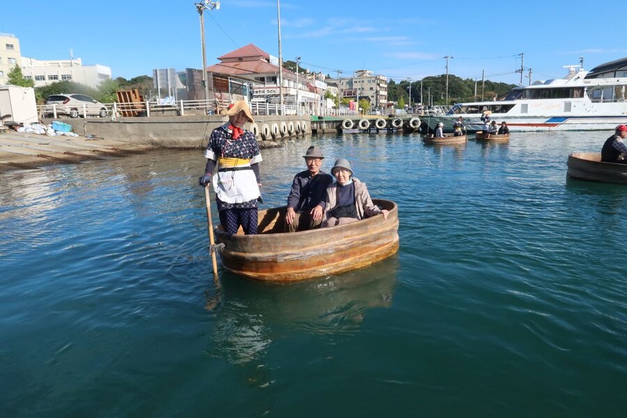 ‟♪ ゆらゆらゆら たらい舟ゆれて・・(男の背中)の替え唄。佐渡を象徴する「たらい舟」は元来サザエやアワビなどの漁のために考案されたもので、島内の3か所で乗船体験ができる。また佐渡の尖閣湾は約3キロの海岸に広がる5つの小湾の総称で、沖縄の尖閣諸島とは異なる。佐渡歴史伝説館も興味深く学ぶところは多い。