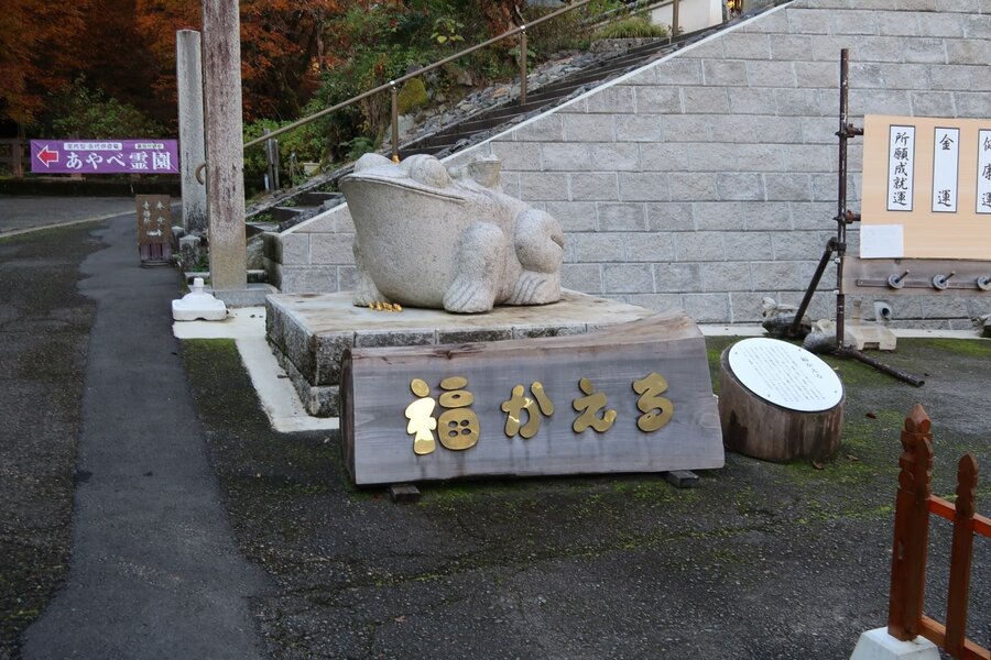 東光院は綾部市にある高野山真言宗のお寺で、梅雨の頃は「あじさいと風鈴」、夏は「風鈴とかざぐるま」、 桃の節句は「ひなまつり」などのイベントで写真のスポットとしても人気がある。あいにくと端境期のためイベントは無かったが、境内のあちこちに風変わりな造形物が見られた。その一部のご紹介である。