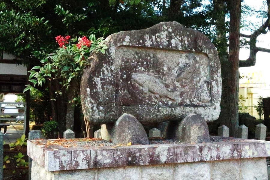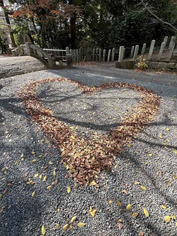 亀岡市にある大井神社は、祭神が保津川を鯉に乗って上がってきたと伝えられ、この地域ではでは鯉が神の使いと考えられ、鯉を食べず、鯉のぼりも揚げない風習が伝わっている。境内はイチョウの落ち葉で、来年の干支の馬をはじめ色々なアートが作られ参拝者を楽しませている。