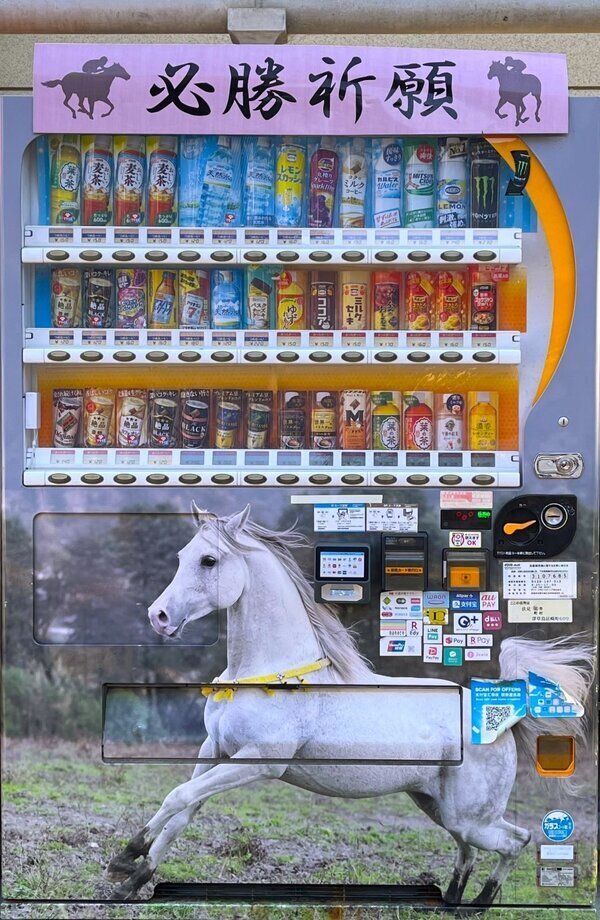 自販機を設置の神社は「勝運と馬の神」とされるだけあり、当たり年の張り切りようが伝わってきます。